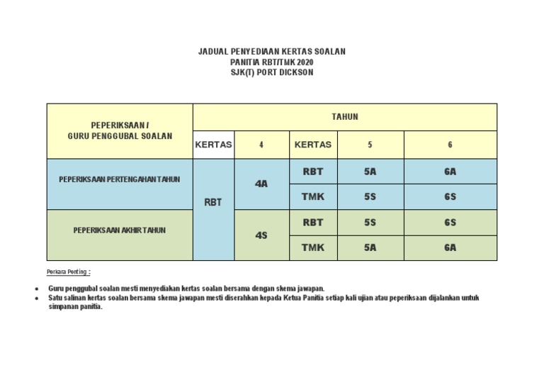 Jadual Penyediaan Kertas Soalan 2020 Pdf